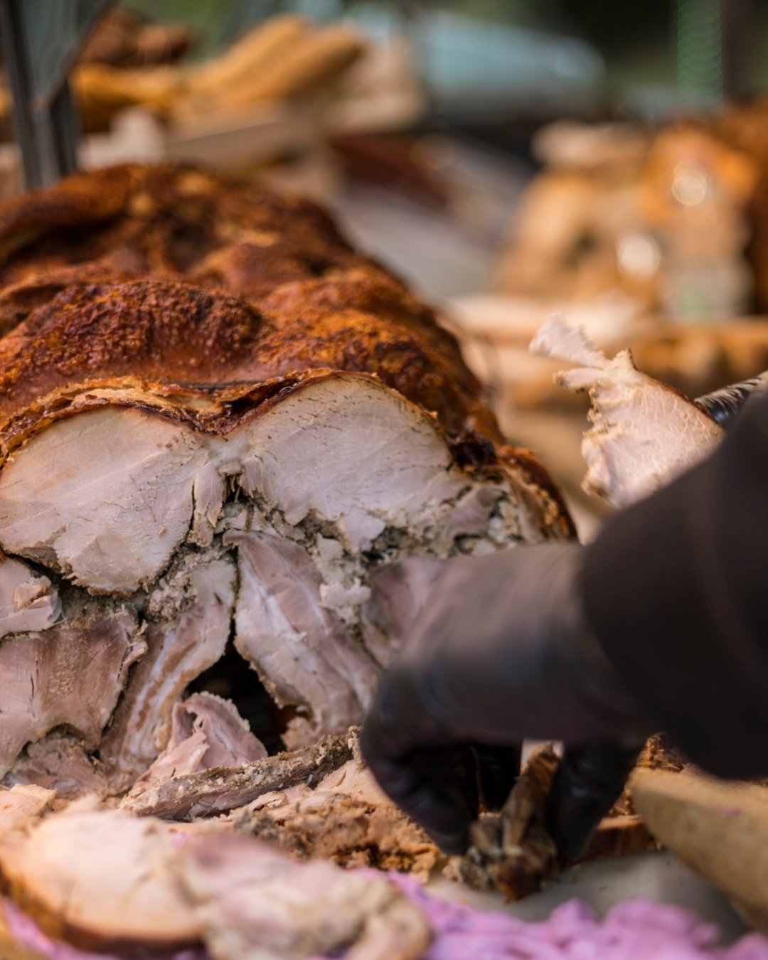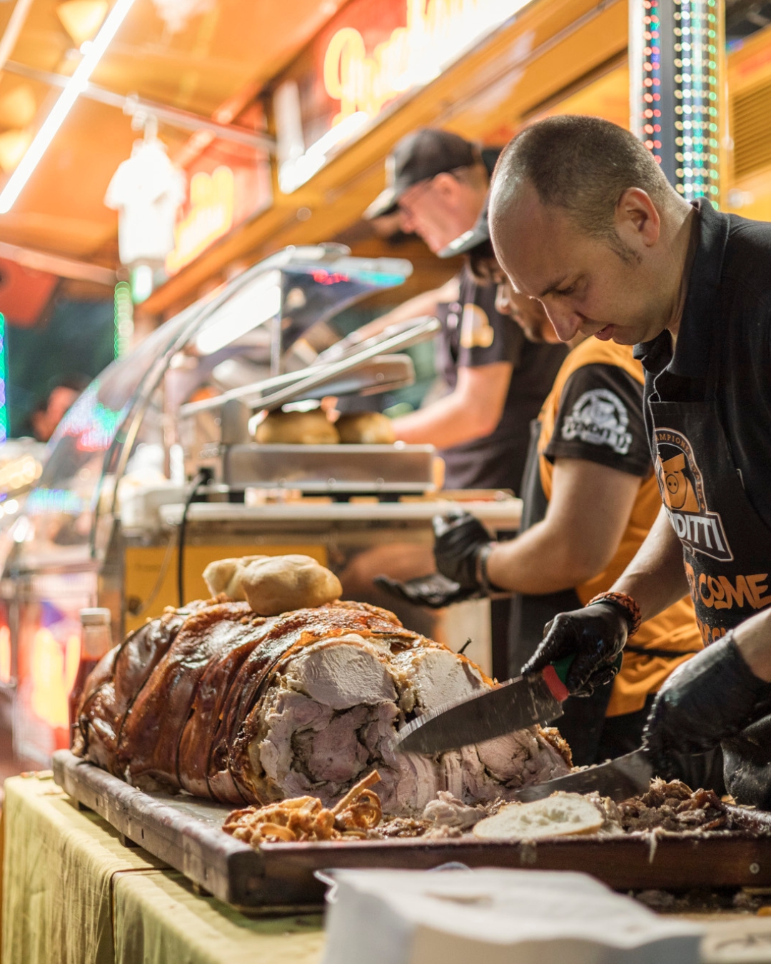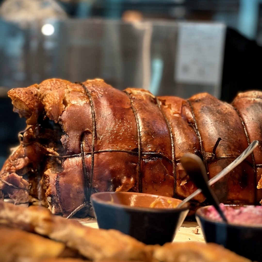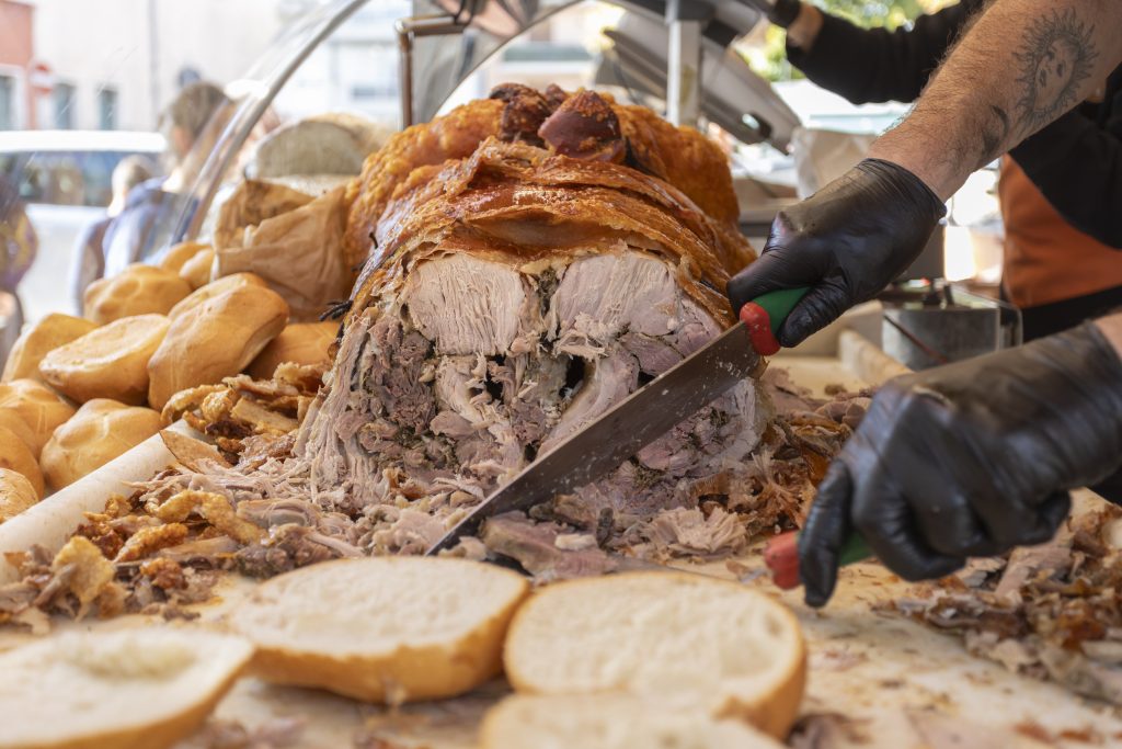 La nostra Porchetta Campione d’Italia si distingue per il rispetto dei gusti tradizionali e per la qualità superiore delle sue carni. Lavorata artigianalmente dai nostri maestri porchettari, per produrla utilizziamo solo suini di razze selezionate e provenienti da allevamenti certificati. La preparazione segue ricette storiche, tramandate da generazioni e viene perfezionata con moderne tecniche di cottura lenta e graduale, per un risultato succulento e irresistibile. Dalla scelta delle materie prime alla cottura finale, ogni fase è curata nei minimi dettagli per offrire una prodotto dal gusto autentico e inconfondibile.